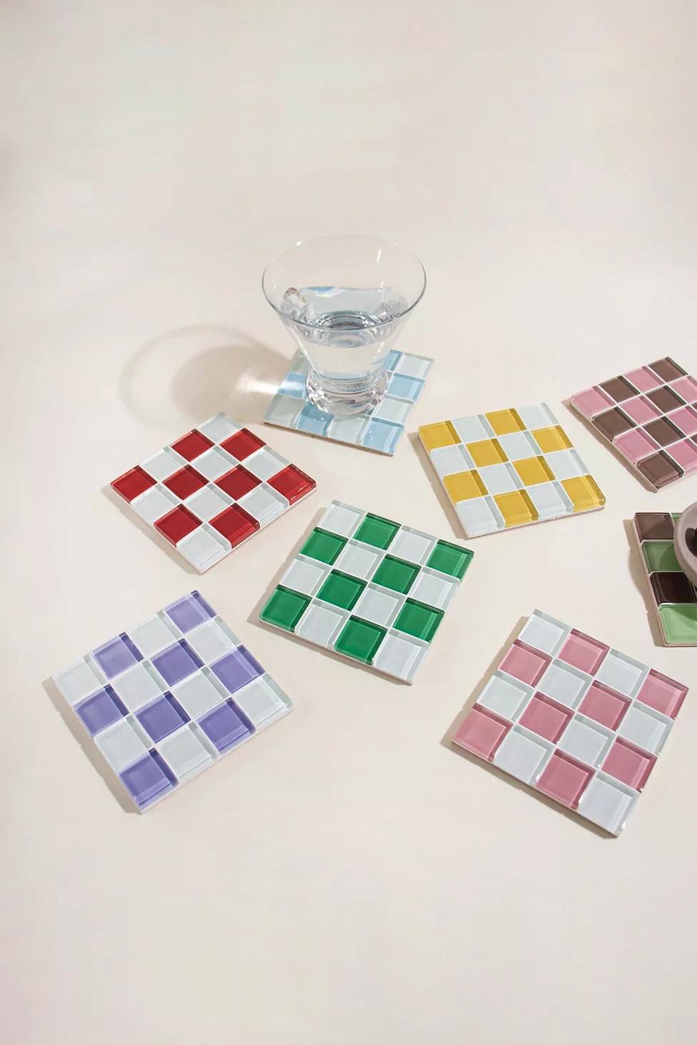 Subtle Art Studios Chocolate Checkered Glass Tile Coaster