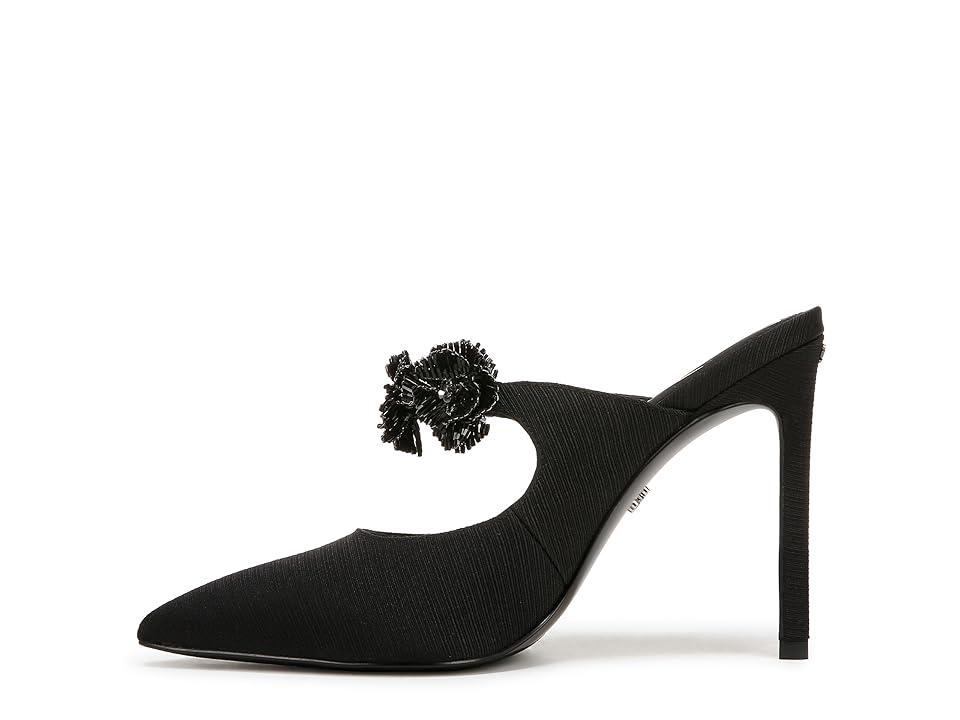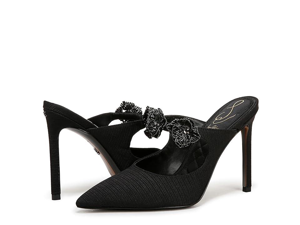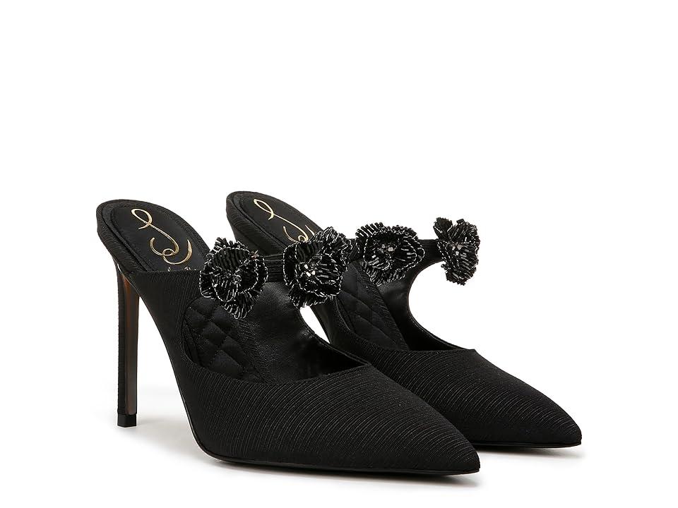 Sam Edelman Amelie - High Heels : Black : With beaded floral detailing and a pointed toe, the Sam Edelman Amelie Dress Mule is a fall-forward classic that pairs with everything from cropped denim to cocktail dresses. The slip-on footwear features polyester upper with sleek stiletto heel and pointed toe silhouette. ; Faux leather lining and insole. ; Synthetic outsole. ; Imported. Measurements: ; Heel Height: 4 1 8 in ; Weight: 1 lb ; Product measurements were taken using size 7, width M. Please note that measurements may vary by size. | Sam Edelman Amelie High Women's Heels Black : 6 M, Leather