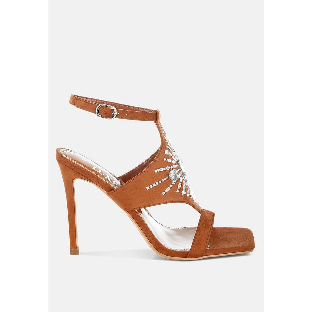 Absolutely stunning and shiny, these stiletto heels feature jeweled embellishments, making them party-ready! They offer a relaxed fit with plush cushion insoles and an adjustable pin buckle ankle closure. The heels come with a 4-inch stiletto heel—blending luxury with all-night comfort. Type: Heels Upper Material: Shiny Fabric Outer Sole: TP Rubber Open Square Toe Jeweled Embellishments Stiletto Heel Pin Buckle Ankle Strap Fastening Plush Cushion Insoles Heel Height: 4 inches SH5331