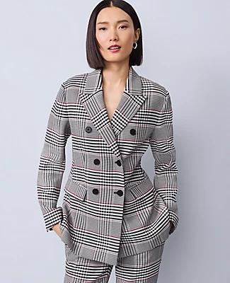 Ann Taylor Plaid Fitted Long Blazer