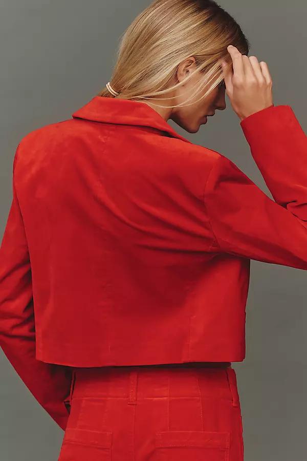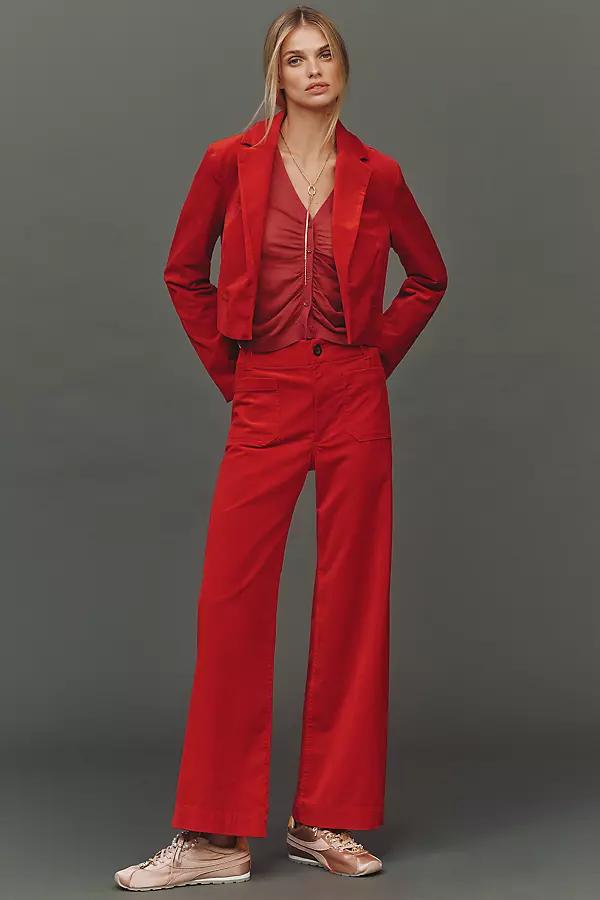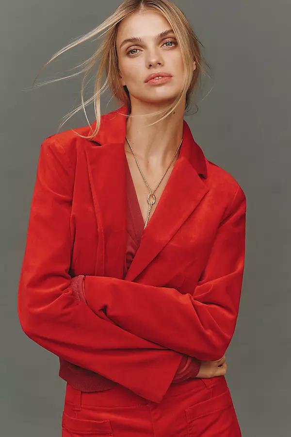 67% cotton, 31% viscose, 2% elastane Two front welt pockets Button front Dry clean Imported Cropped Tuxedo Blazer Jacket by Maeve in Red, Women's, Size: XS, Cotton/Viscose/Elastane at Anthropologie