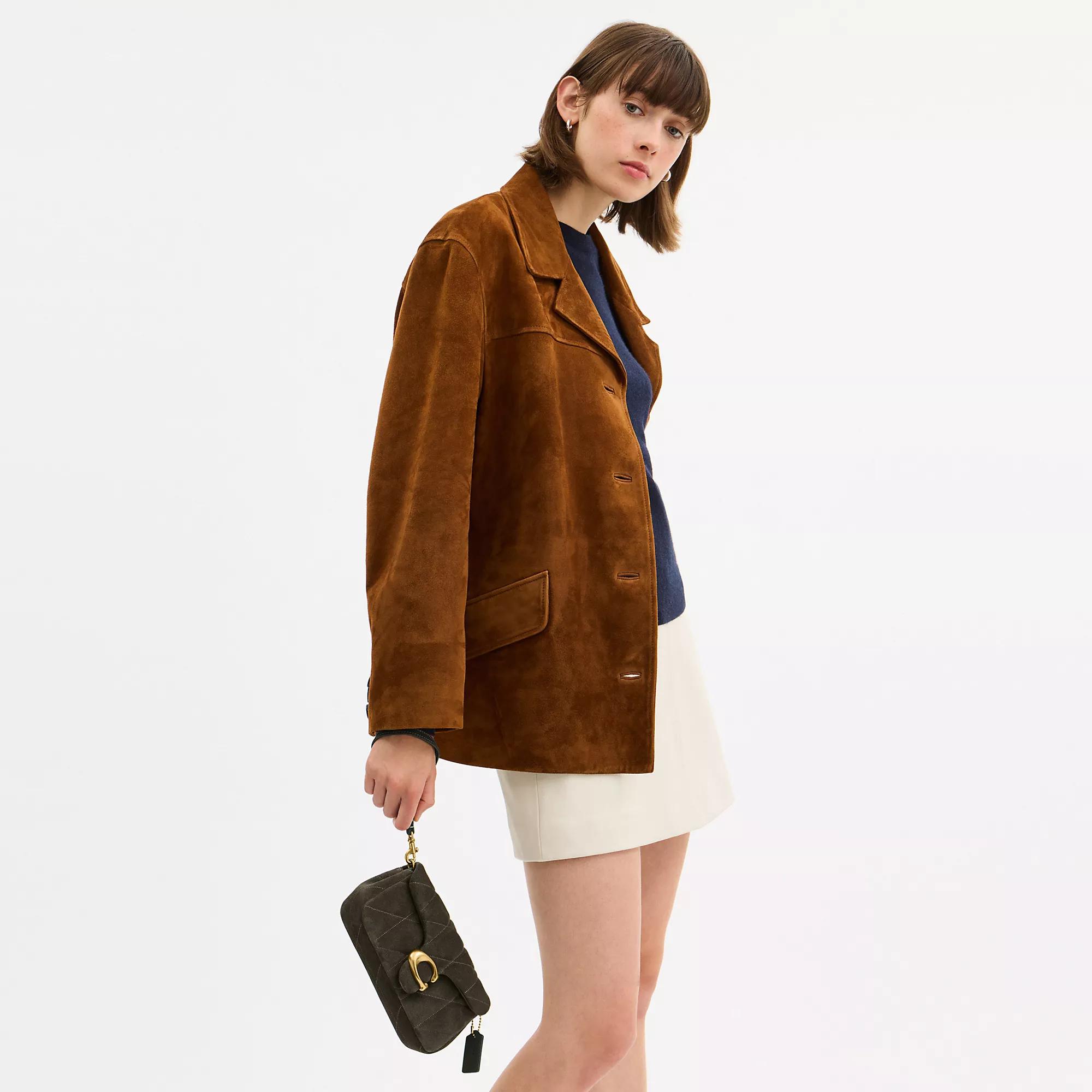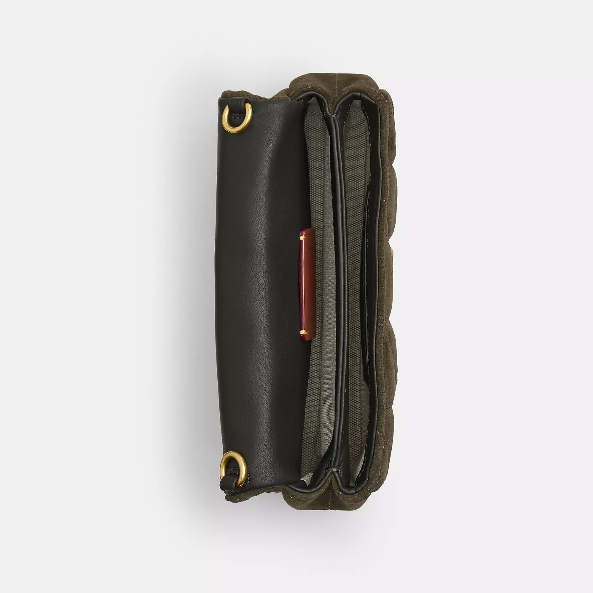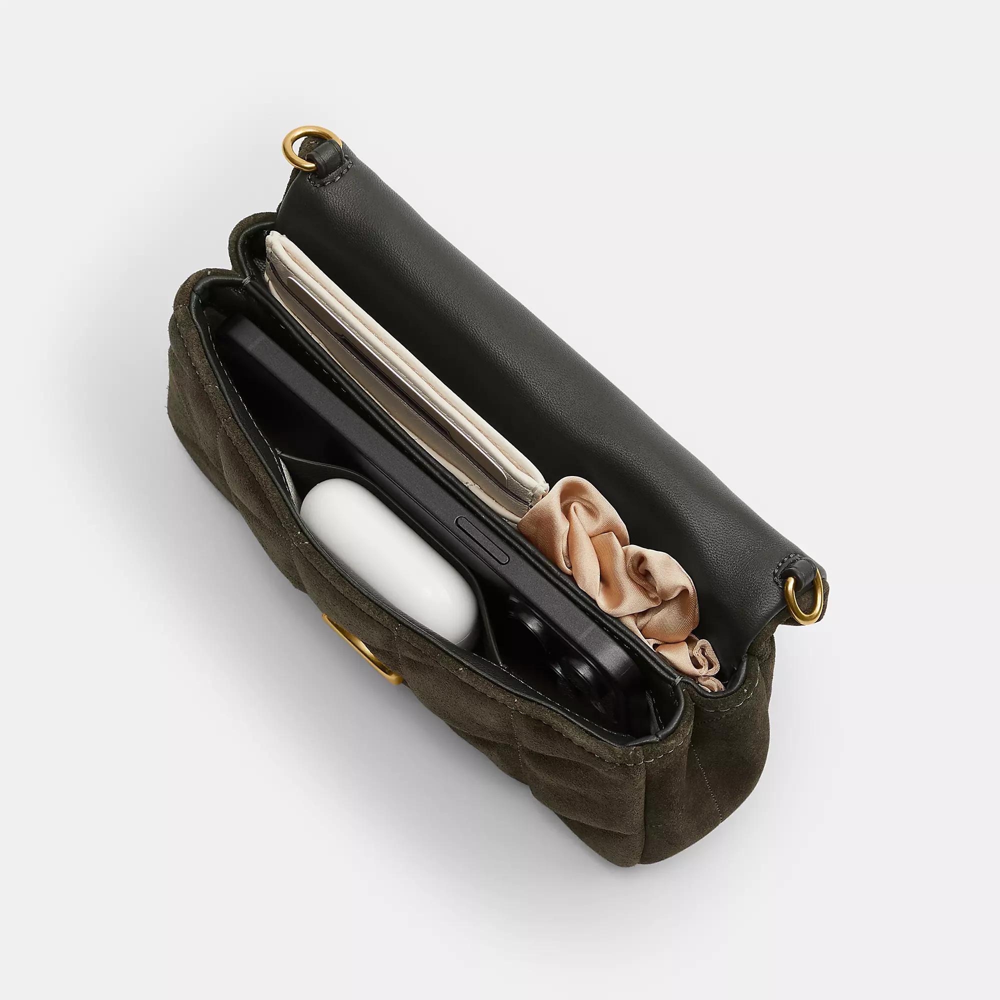 A modern take on an archival 1970s Coach design our structured Tabby Chain Crossbody Bag 19 is crafted of quilted velvety suede. Finished with our Signature hardware this organized two-compartment design is perfectly sized for cards cash and a phone with a convenient exterior slip pocket for easy access to essentials. The versatile style can be carried as a wristlet or a clutch and worn crossbody with the elegant chain strap making it the perfect choice for both dressed up and casual looks. Coach Tabby Chain Crossbody Bag 19 With Quilting - Women's - Brass/olive