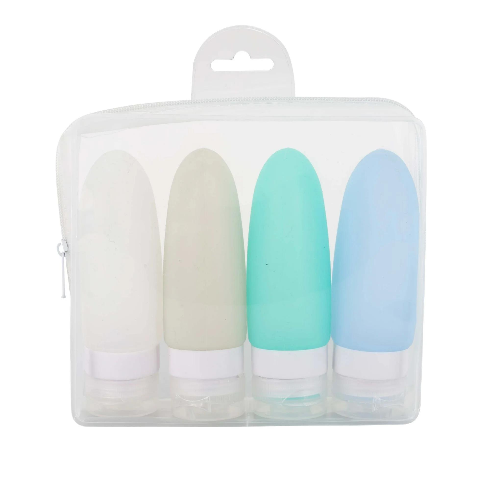 G-Force Set of 4 Silicone Travel Bottles and Carrying Pouch TSA Approved 89ml Multicolor