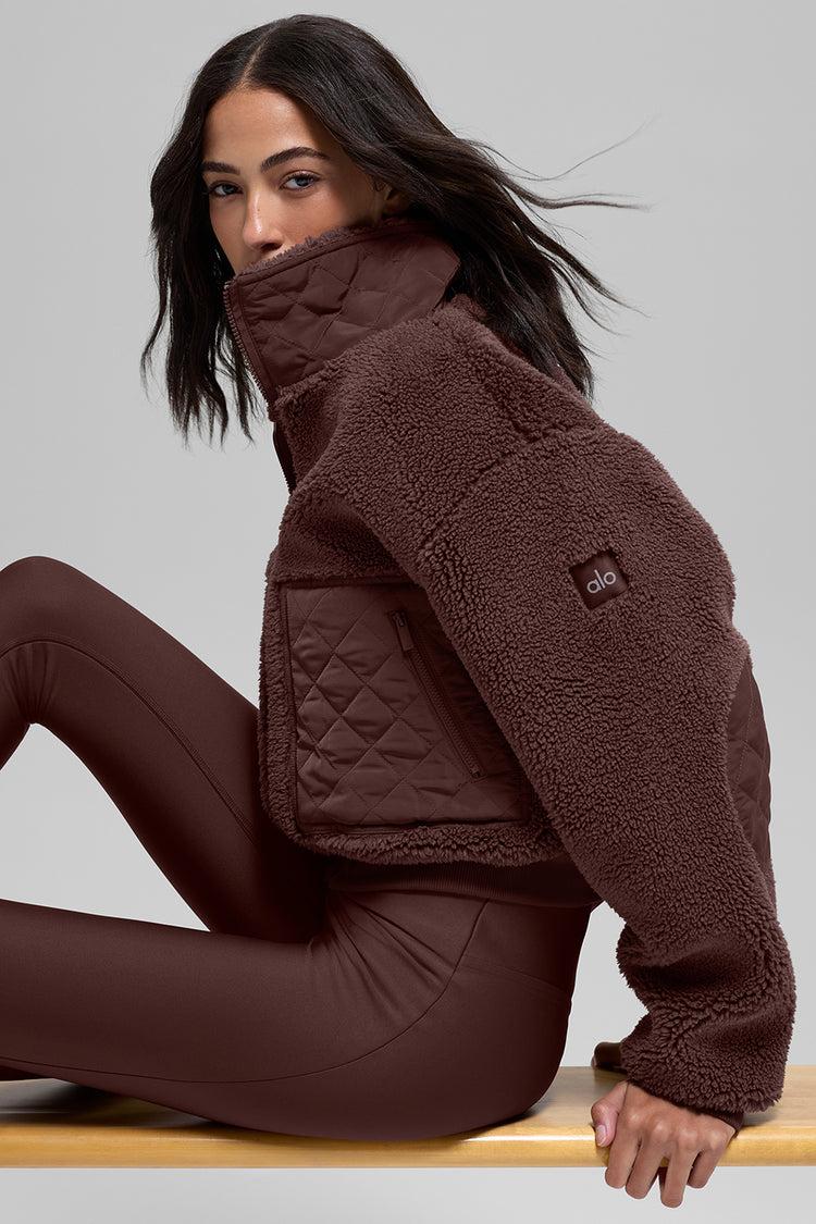 Done in sherpa with quilted patches at the pockets, elbows and back, this bomber jacket is, well, the bomb. We love the boxy, slightly cropped silhouette and the ribbing at the cuffs and hem— it makes the fit even cozier. Throw it on over a matching set en route to your workout, zip it all the way up, show off the sherpa-lined collar.