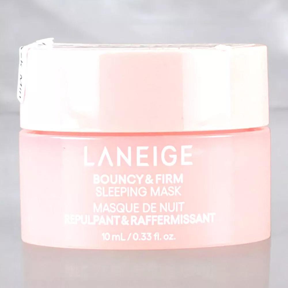 *Note, this is the mini trial size. Authenticity is guaranteed! Say goodbye to tired-looking skin and hello to the visibly plump, firm complexion you've been dreaming of with the LANEIGE Bouncy & Firm Sleeping Mask Mini. This cult-favorite Korean sleeping mask is the perfect travel-sized ticket to "truly bouncy skin," helping to restore resilience and combat early signs of aging while you simply drift off to sleep. Inspired by the best of Korean slow-aging skincare, this overnight treatment delivers a rush of youth-boosting moisture and glow-enhancing ingredients, making it an essential, non-negotiable step in your nightly ritual. The magic lies in the unique texture and the powerful, innovative blend of ingredients. Featuring LANEIGE's signature Peony & Collagen Complex™ alongside Peptides, the formula works tirelessly to help boost and preserve the skin's natural collagen, leaving your face looking firmer and smoother by the morning. The sherbet-like texture is infused with Hydro-Melt Glow Capsules—tiny, powerful beads that instantly melt into your skin upon application—forming a protective, breathable moisture barrier that locks in hydration all night long. This sorbet-like consistency feels absolutely luxurious, providing a refreshing finish that never leaves your skin sticky. Wake up to a radiant glow that looks like you had four extra hours of sleep, even if you didn't. This Bouncy & Firm Sleeping Mask is formulated to tackle key skin concerns like dryness, dullness, and loss of elasticity, helping to visibly minimize the appearance of fine lines and wrinkles over time. Use this mini mask 2-3 times a week as the final, lock-it-all-in step in your evening routine, or even daily for a truly transformative experience. It’s suitable for all skin types—Oily, Normal, Dry, and Combination—making it the ultimate self-care in a jar for visibly plumped and glowing skin.