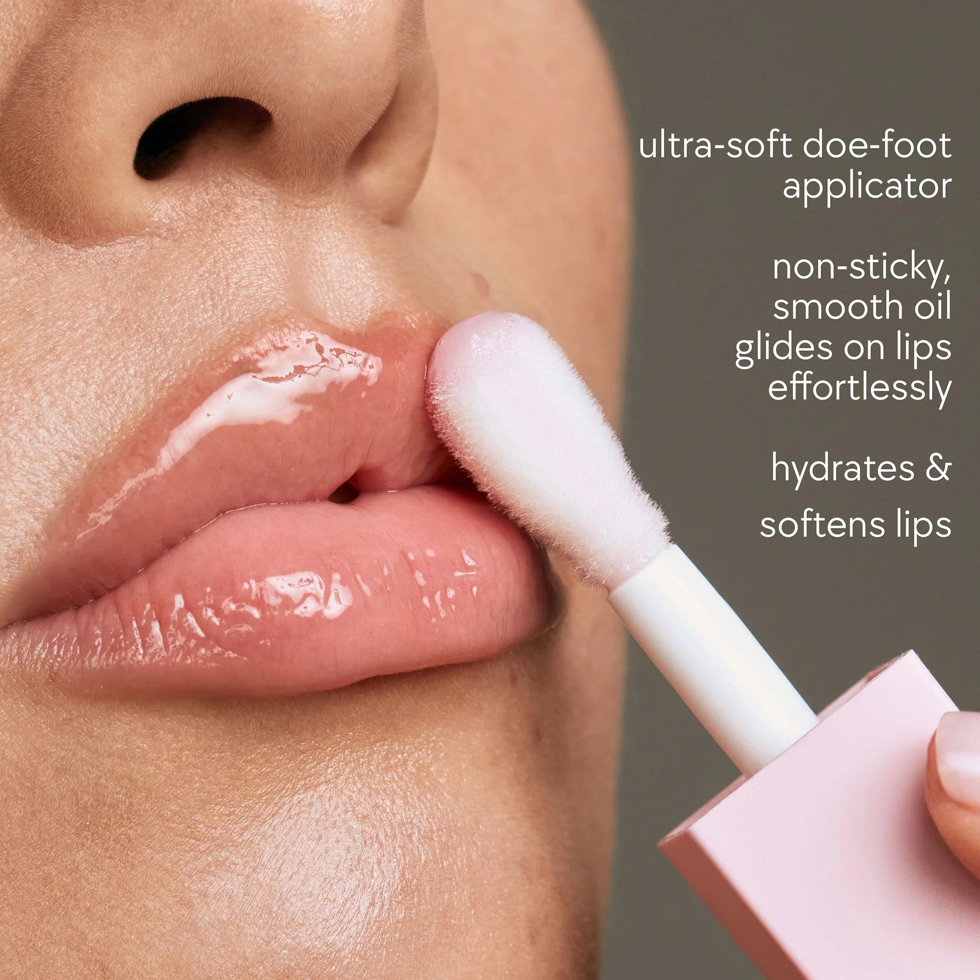 From the creator of the infamous lip kit, Kylie Skin presents the Lip Oil, a best-selling formula that combines the shine of a gloss with the moisturising benefits of a balm. Infused with a rich blend of coconut oil, raspberry and passionfruit seed, the hydrating oil leaves lips feeling smooth and visibly plumped, while its non-sticky texture glides on effortlessly. Enhanced with vitamin E and the Lip Plump Complex, the oil nourishes to reduce the appearance of fine lines, providing a comforting, conditioning experience. Complemented by an ultra-soft doe-foot applicator that ensures ample product in one swipe, lips are left looking fuller.