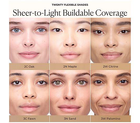 This Tinted Moisturizer Skin Perfector provides buildable coverage with a dewy finish. It also includes Broad Spectrum SPF 30 sunscreen, meaning it's great to wear when you're out and about. How do I use it: Place a small amount of moisturizer on the back of your hand and then apply to the brush and gently swipe all over the face. From Laura Mercier. Includes: