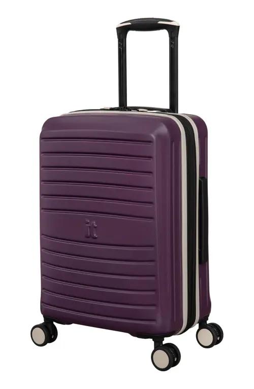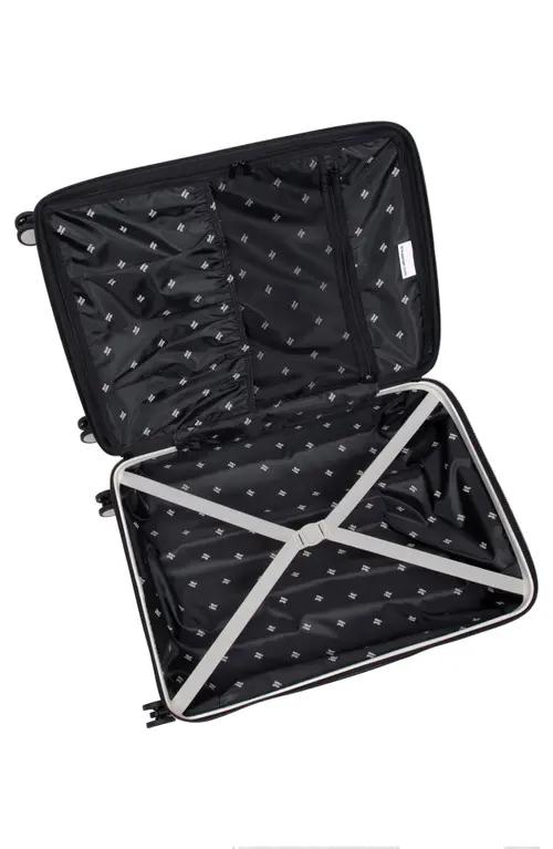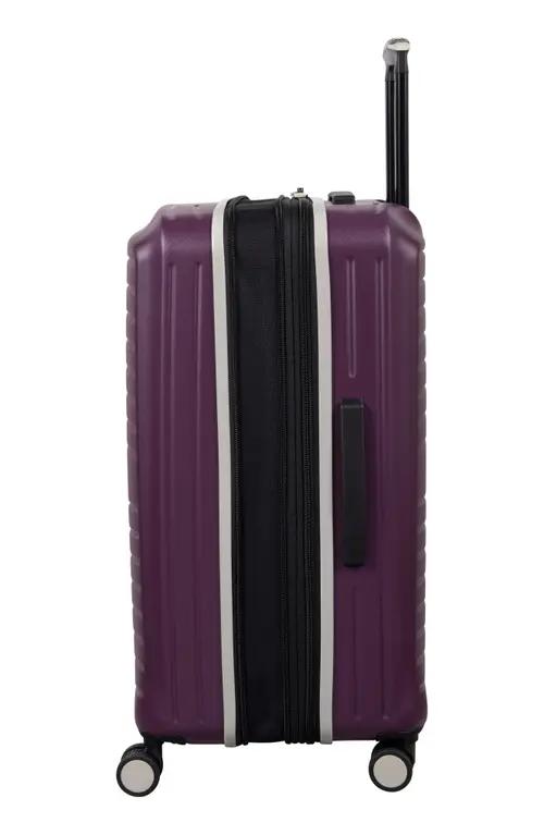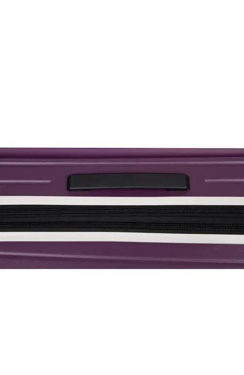 Durable and versatile, this carry-on bag is expandable to give you more packing space on the go with a hardshell exterior that stands up to rigorous travel.Closure: Two-way zip-around closure. Exterior features: Water-resistant ABS material with a textured surface ensures lightweight durability and protection. A telescoping handle maximizes comfort and control for users of different heights. Four double-wheel spinners glide effortlessly to navigate through busy airports.Interior features: Roomy dual compartments with an expansion zipper increases interior volume to maximize packing flexibility. A zippered half divider panel provides packing options and keeps contents in place. Compression garment straps and zippered mesh pockets provide added packing potential.Sizing information: 21.3" x 14.8" x 9.6" with 2.5" expansion. ABS/polyester Imported