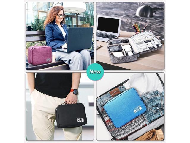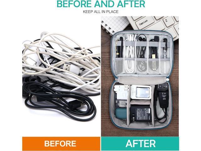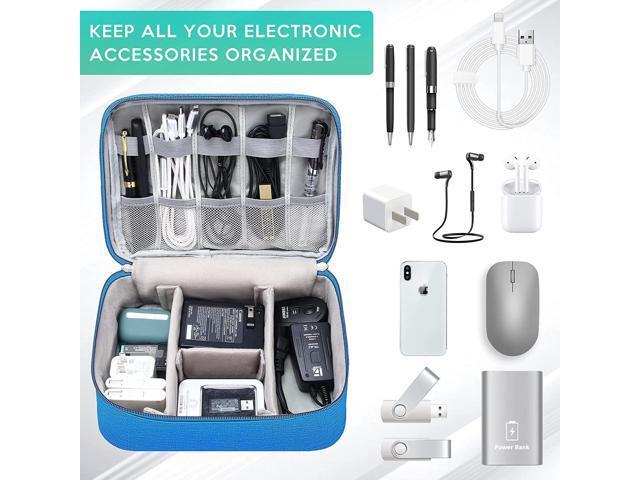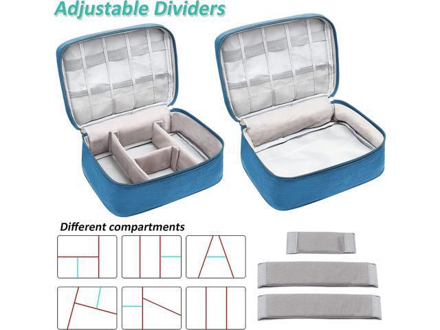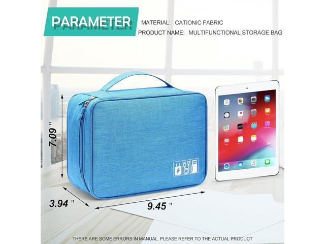 There are three removable padded dividers with velcro in the bottom of cable case, you can DIY them to separate the one bottom space into several compartments, fitting accessories of different sizes, keeping all your electronic accessories in order. (PREMIUM QUALITY) - - This travel cable organizer is made of waterproof cation 300D fabric and thick padded inner material. Newly improved double zippers with plane design are more smooth and durable. Superior & neat stitching makes the electronic organizer case exquisite and unique. (NO MORE MESSY) - - The cord travel case has compact pockets to keep everything organized well. Except 3 detachable dividers, there are 5 mesh pockets with elastic loops for slender cables, earphones, pens etc, prevent cables from getting enttangled. (TRAVEL PARTNER) - - Size 9.45 x 7.09 x 3.94 inch, the ideal size make the travel electronic organizer easy to be fitted in your backpack and luggage without taking much space, and a top