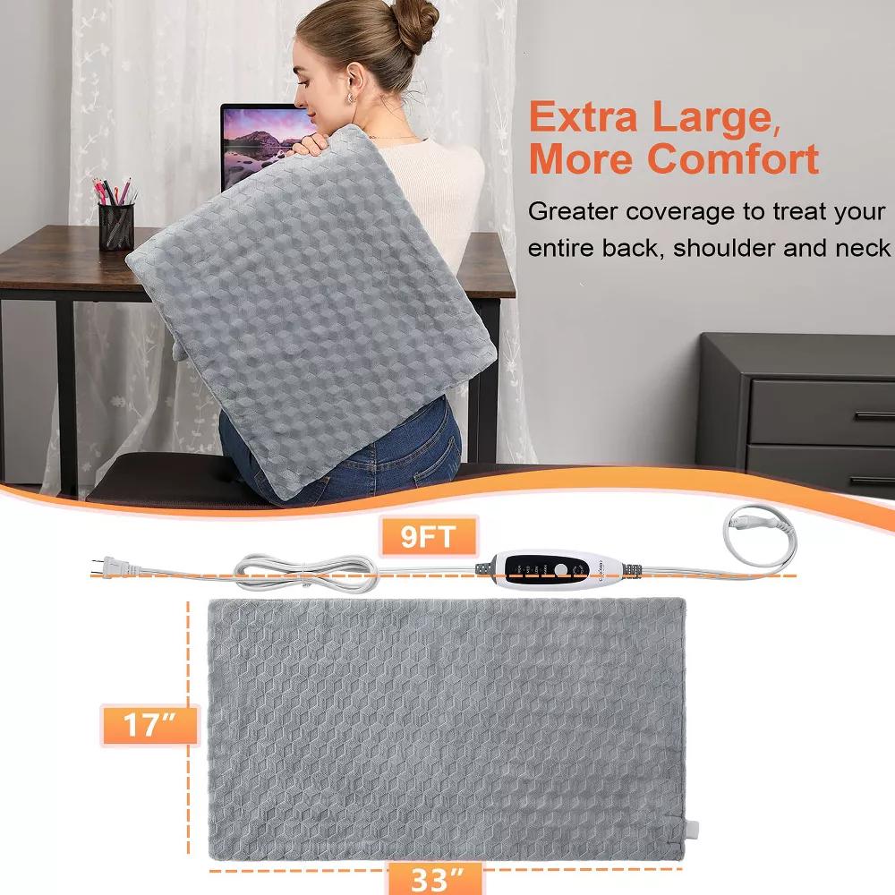 Electric pad designs 17 x 33 inches, large enough to relieve your back pain and cramps. It is used to treat pain and discomfort in the waist, neck, knees, shoulders and legs, keep your body warm in chilly winters anytime.