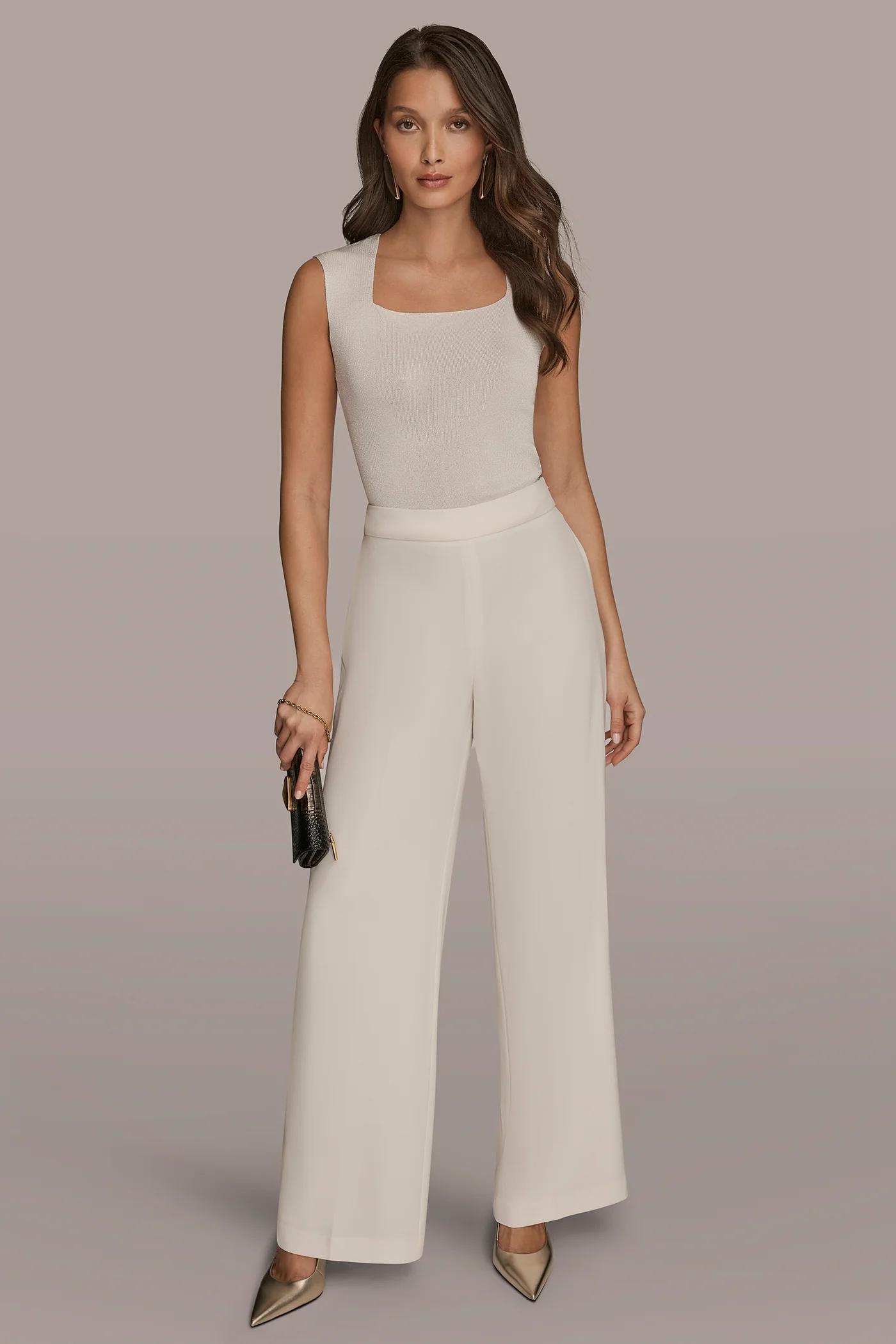 Extra High-Rise Wide-Leg Suit Pant Concealed side zip fastening Unlined (lined in Cream) Stretch-crepe: 96% polyester, 4% spandex; cream pant lining: 95% polyester, 5% spandex Machine wash cold Style #: O5NPV394