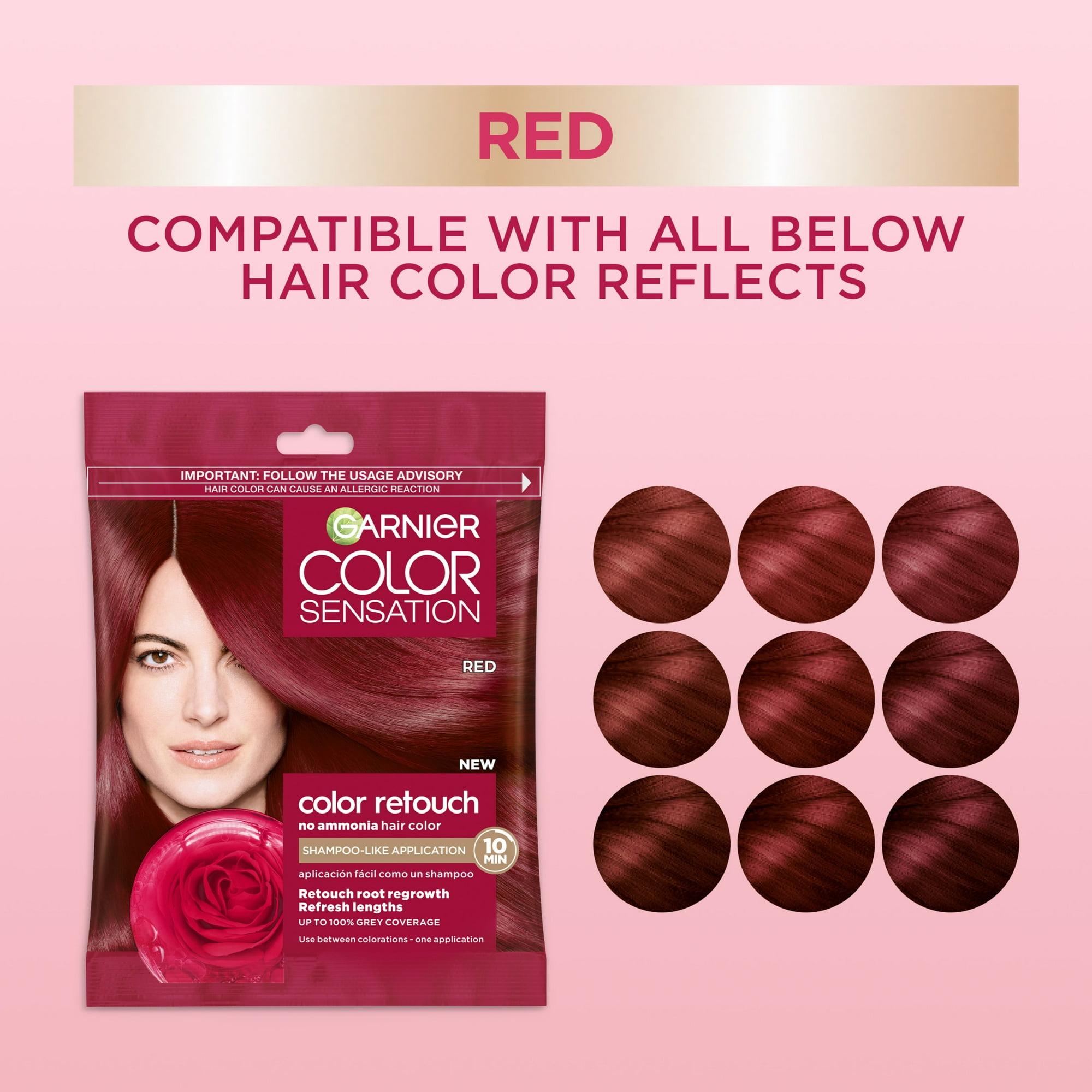 Garnier Unisex Color Retouch Hair Color has an ammonia-free formula for Roots Retouch and Lengths Refresh in just 10 minutes. Delivers up to 100% grey coverage for gray hair treatment 4 weeks of long-lasting color with easy shampoo-like application. Compatible with your hair color Red. Vegan Cruelty-Free. Elevate your hair care routine with Garnier Color Retouch Hair Color the perfect solution for quick and easy touch-ups that leave your hair looking vibrant and refreshed.