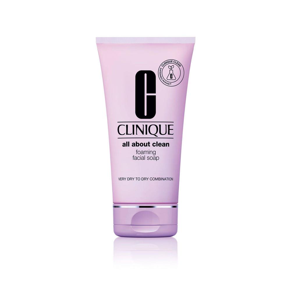 Clinique All About Clean™ Foaming Facial Soap is a creamy foaming cleanser that gently yet thoroughly removes pollution, dirt, excess oil and makeup to reveal smoother, clearer skin. Maintains skin moisture balance. Leaves dry skin feeling soft and comfortable, never tight. Non-drying. Non-stripping. Non-acnegenic. Dermatologist tested. Key Ingredients Formulated with glycerine and hyaluronic acid for a softer, more conditioning cleanse. Formulated with sucrose, known to calm and soothe skin. Free Of Paraben-free, Phthalate-free, Free of denatured alcohol, Free of synthetic colors, SLS-free, SLES-free, Sulfate-free, Gluten-free How To Use Lather between palms with lukewarm water. Massage gently over wet skin, avoiding eye area. Rinse off. Follow with Clarifying Lotion to clear the way for smoother, brighter skin. More sustainable packaging: Tube is minimum 39% post-consumer recycled material, 28% plant-derived plastic. Cap is 25% post-consumer recycled material.