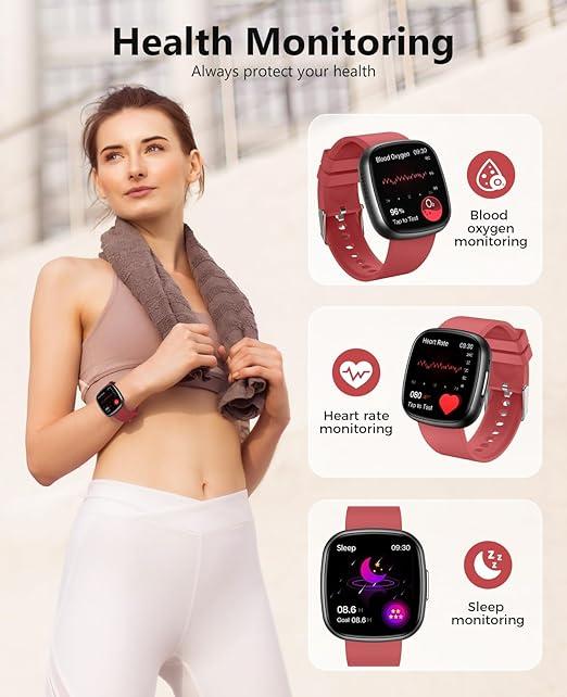 Smart Watches,Blood Oxygen Monitor, 1.72" HD Touch Screen Fitness Watch, Heart Rate Sleep Pressure Monitoring, 100+ Sports Modes, IP68 Waterproof Fitness Tracker, Compatible with Android and