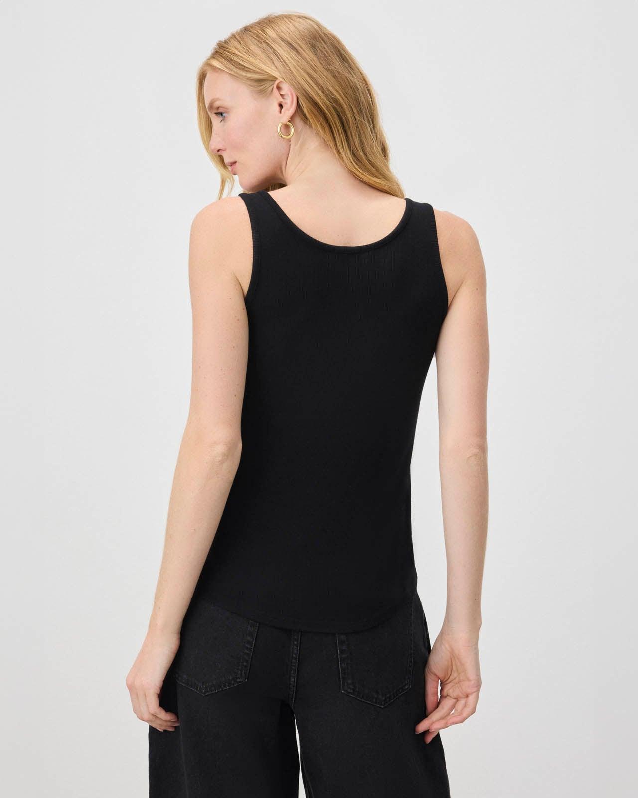 With its classic scoop neck and wide, bra-friendly straps, the Zuma Tank is an ideal balance of elevated and casual dressing. Like a second skin, our Essential Rib fabrication has a breathable, barely-there feel for a hugs-you-just-right fit that tops all wardrobe essentials. Scoop neck Sleeveless Bra-friendly with 1" straps Hits at the hips Shirttail hem Essential rib fabrication