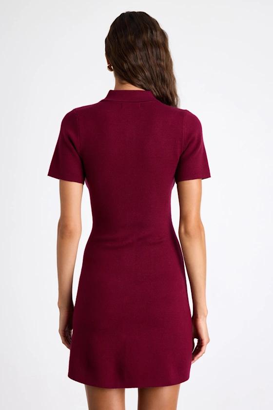 Posh Outcome Wine Red Short Sleeve Sweater Mini Dress