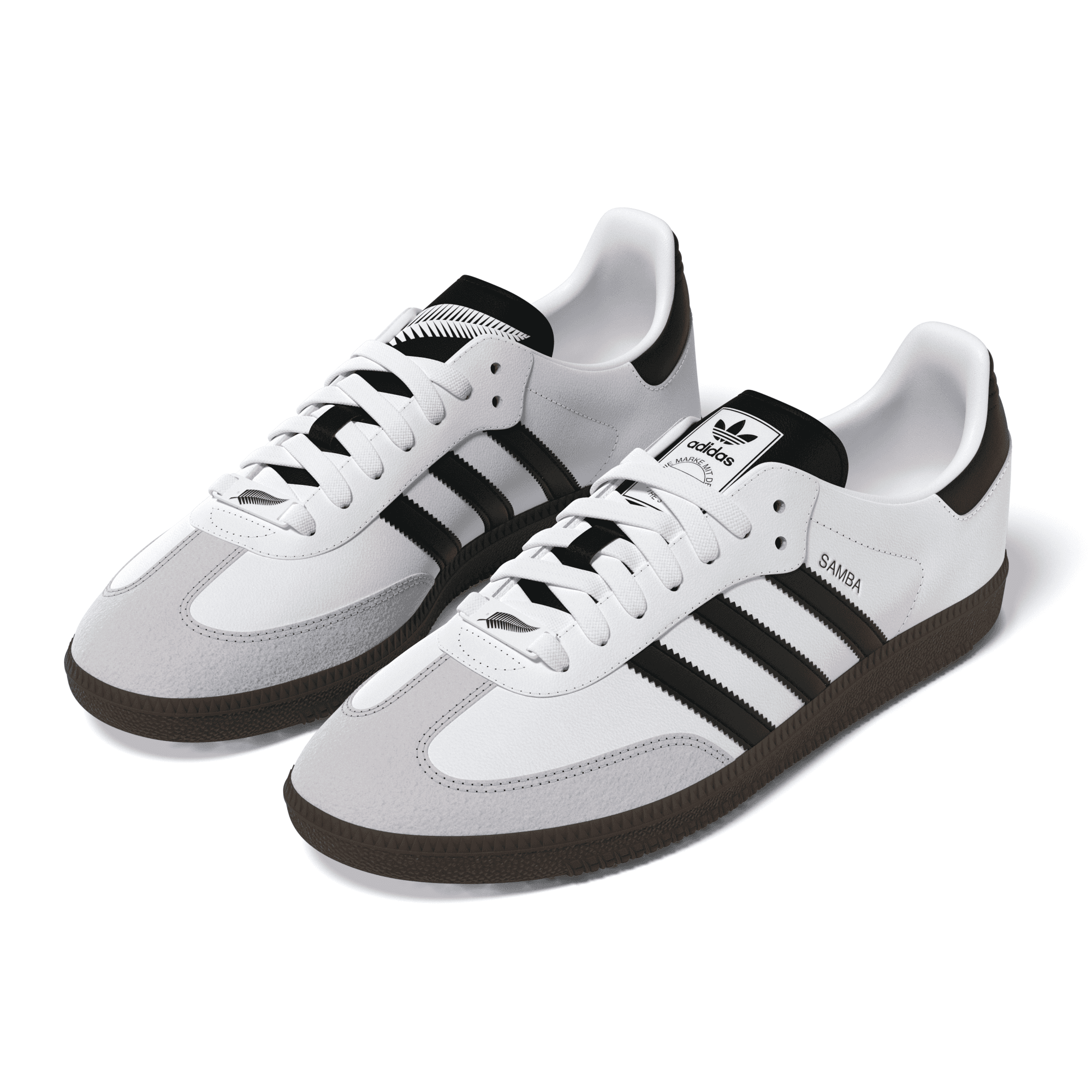 Wear your All Blacks style anywhere you go with these classic Adidas Samba trainers featuring colours and details of the New Zealand national team. Samba is a true representation of the trefoil. It has kicked its way through the decades since the 1950s, from football pitches to skate parks, collecting a cohort of wearers along the way. A timeless classic designed to stick around; the Samba is a staple to make your own.