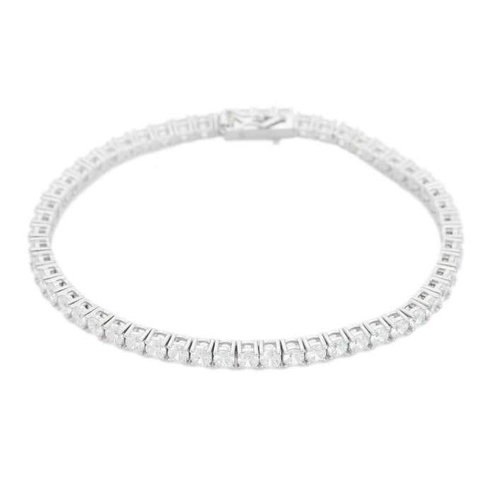 This elegant tennis bracelet is crafted from 925 sterling silver and adorned with brilliant round cubic zirconia stones arranged in a continuous row. Measuring 7 inches in length with a width and height of 2 mm each, the bracelet weighs 10 grams. Its sleek and timeless design adds a refined touch of sparkle, making it perfect for both everyday wear and special occasions. Make this stunning bracelet the perfect Christmas gift, anniversary present, Valentine's surprise, or New Year's treat. Order now for someone special or as a personal reward. PRODUCT DETAILS: Metal - 925 Sterling Silver Gemstone - Cubic Zirconia Gemstone Shape - Round Gross Weight - 10 grams Length - 7 Inches Width - 2 mm Height - 2 mm You can find more handcrafted gemstone jewelry by visiting our storefront. Follow us to explore our latest designs and new arrivals. W H Y CHOOSE US? Free and Prompt Shipping Lifetime warranty with Certification Easy 30-da return Premium Quality Craftsmanship For custom sizing or personalized design requests, please don't hesitate to contact us. We offer made-to-order options to help you create a piece that fits your preferences. Feel free to follow the shop for updates or message us with any questions you may have.