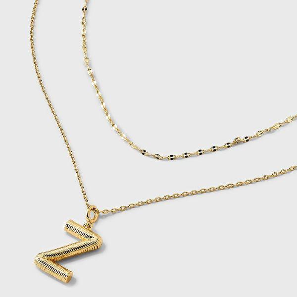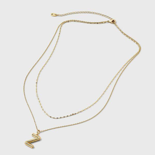 Add a personalized touch to your everyday looks with this 14K Gold-Dipped Cubic Zirconia Duo Initial Multi-Strand Necklace from A New Day™. This layered necklace features two delicate chains — a linked chain with a hammered finish and a cable chain showcasing a chic letter charm to represent your initial. Crafted from 14K gold over brass, it brings a luxe finish to both casual and dressier outfits, and it's made with nickel-free metal to suit most skin types. A New Day™: Style that goes wherever you do.