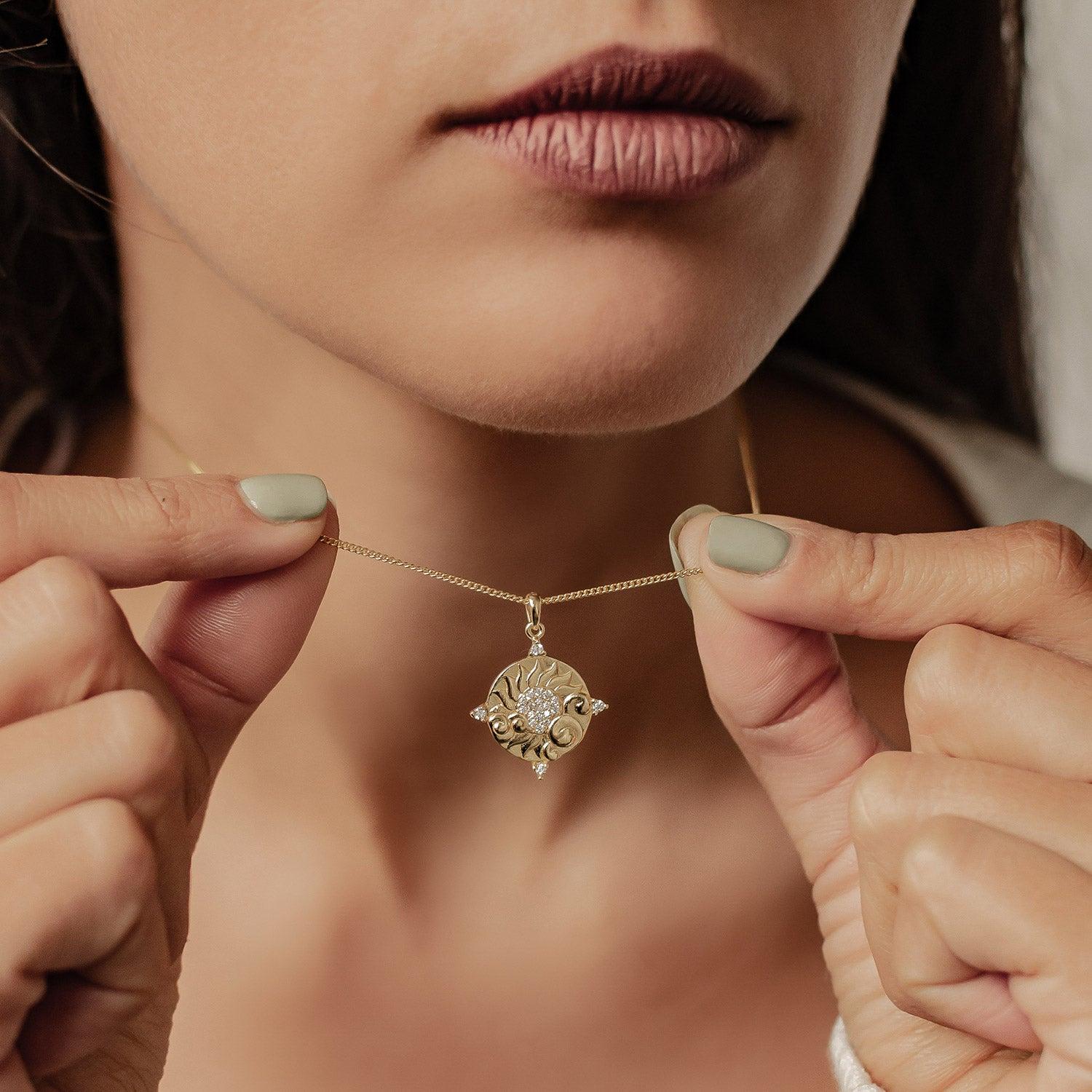 Energize your style with our Energy Pendant Necklace, crafted in 18K gold-plated sterling silver and sterling silver. The thin chain necklace features a removable round pendant with a large open flower or sunflower, adorned with zirconia stones and the word 'Energy' on the back. Fasten it with a round spring clasp and choose your length with four jump rings. This unique necklace encourages you to manifest your vitality and zest into everyday life. Also, check out Joyful Pendant for Positivity & Good Vibes.