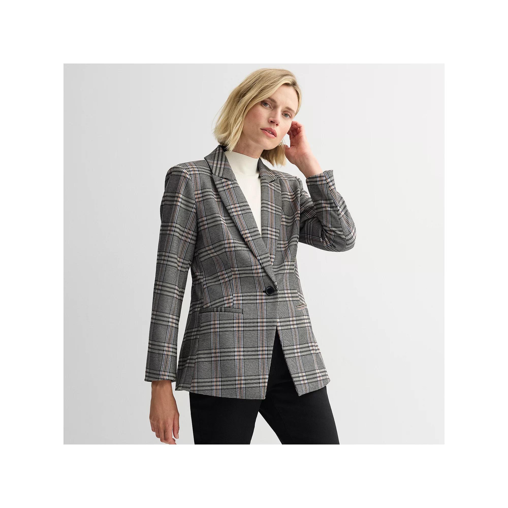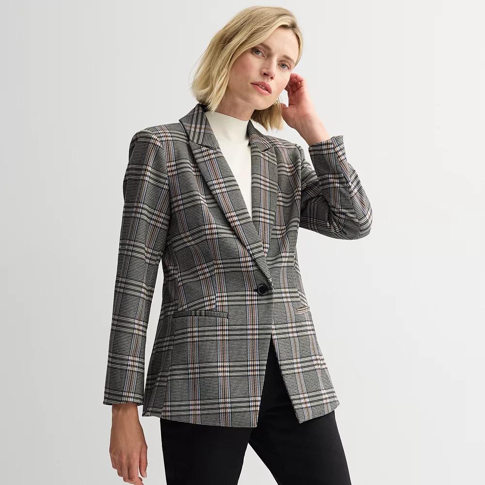 Give your wardrobe a fashionable refresh with this peak lapel blazer from Nine West. Click on this WOMEN'S GUIDE to find the perfect fit and more! - https://www.kohls.com/feature/womens-fit-guide.jsp. FEATURES: Peak lapel, 1-button front closure, Long sleeves, Straight hem; vented hem, 2 pockets (front, functional), Velvet handfeel, Fully lined; partially lined. FIT & SIZING: Fitted at the waist when buttoned, 28-in. length from shoulder to hem; 27-in. length from shoulder to hem. FABRIC & CARE: Body: polyester, spandex; polyester, rayon, spandex, Lining: polyester, spandex, Machine wash and tumble dry low, Imported. Size: Small. Color: Blue Glen Plaid. Gender: female. Age Group: adult. Material: OTHER MATERIAL.