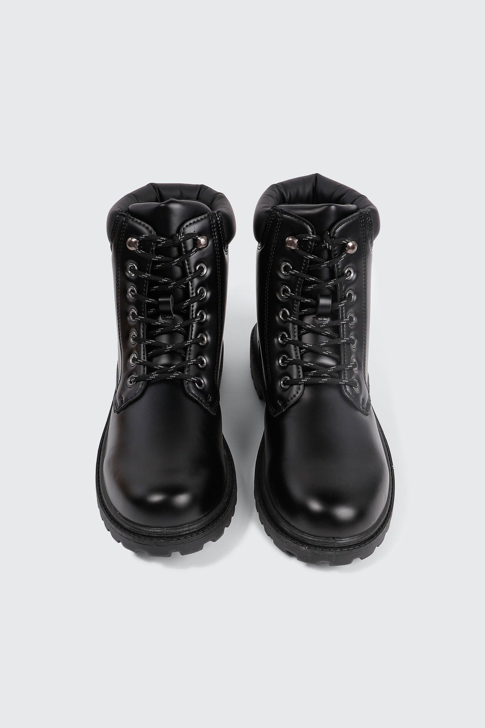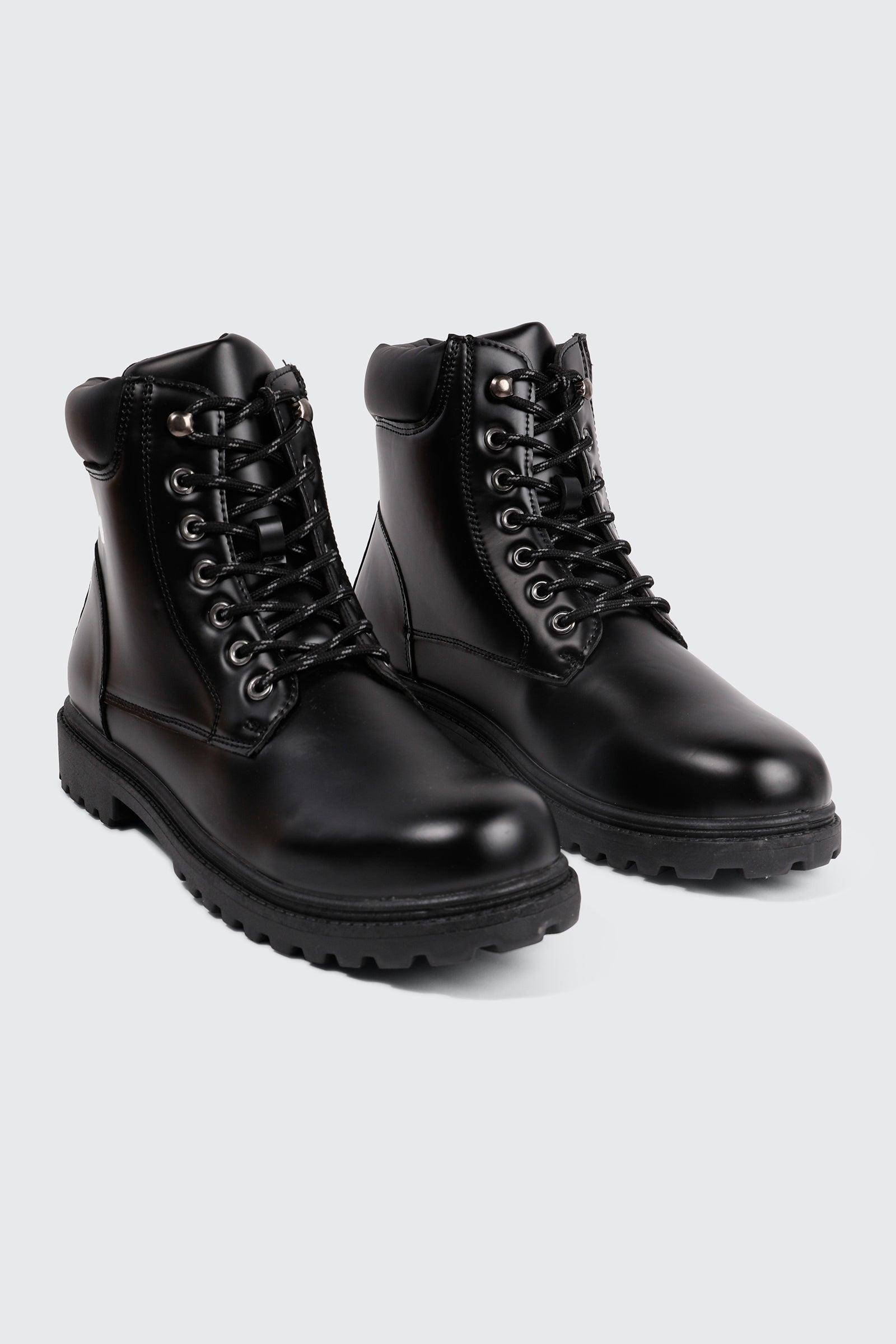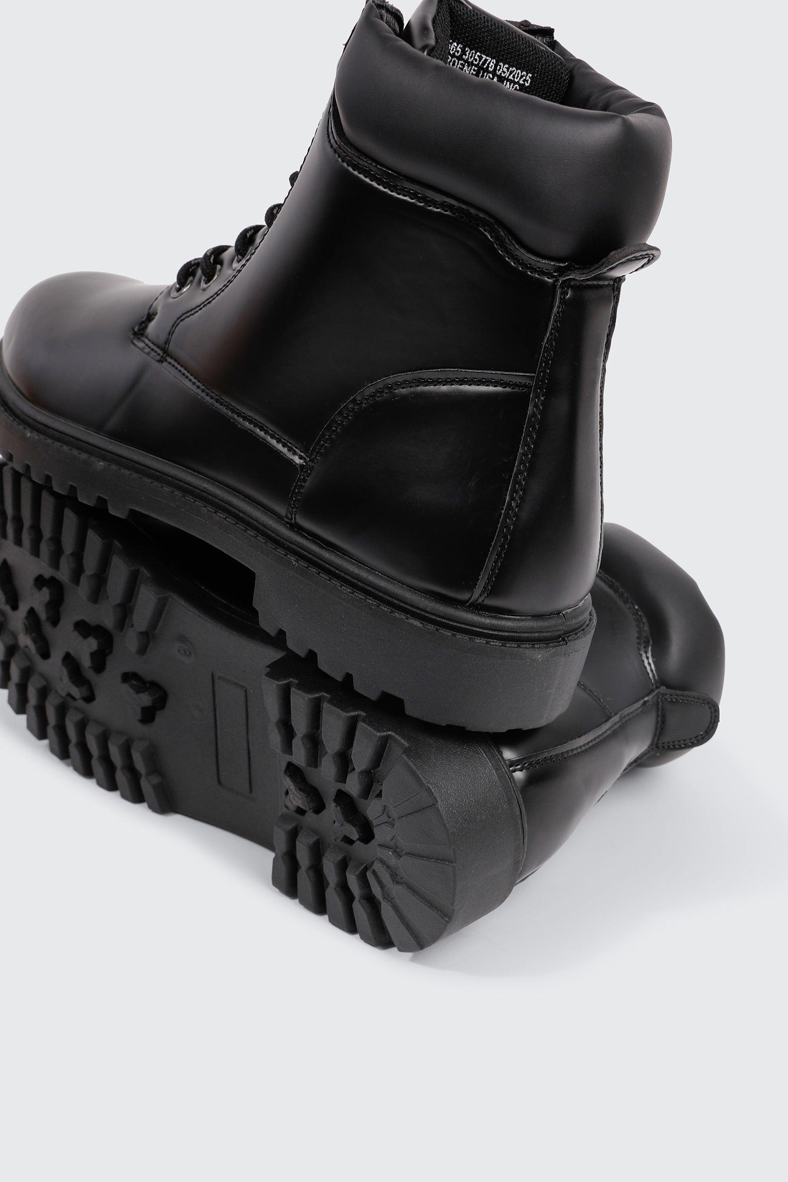 Exclusive piece from our Ardene Man collection. Lace-up ankle boots for men. Upper: polyurethane Lining: mesh Comfort foam insole Outsole: PVC | Ardene Man Lug Sole Lace Up Boots For Men in Black | Size 11