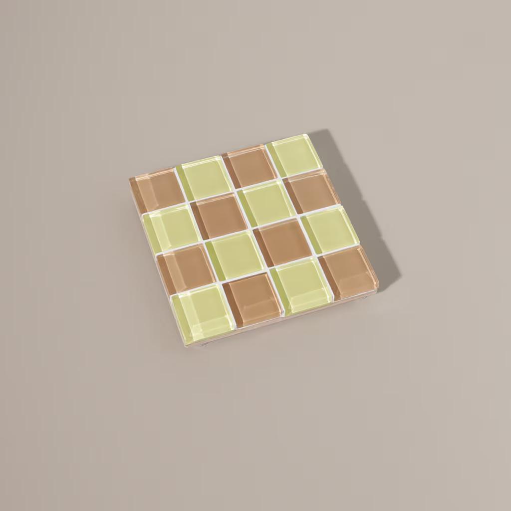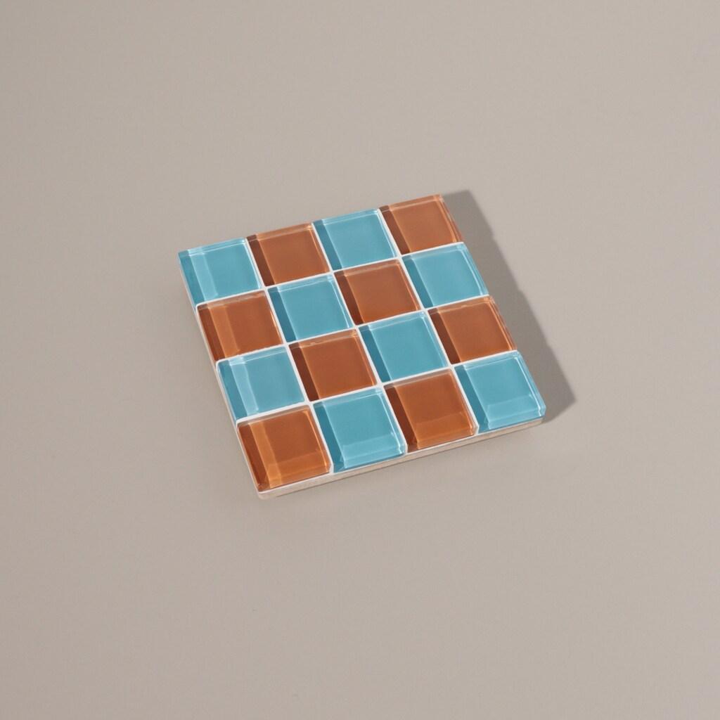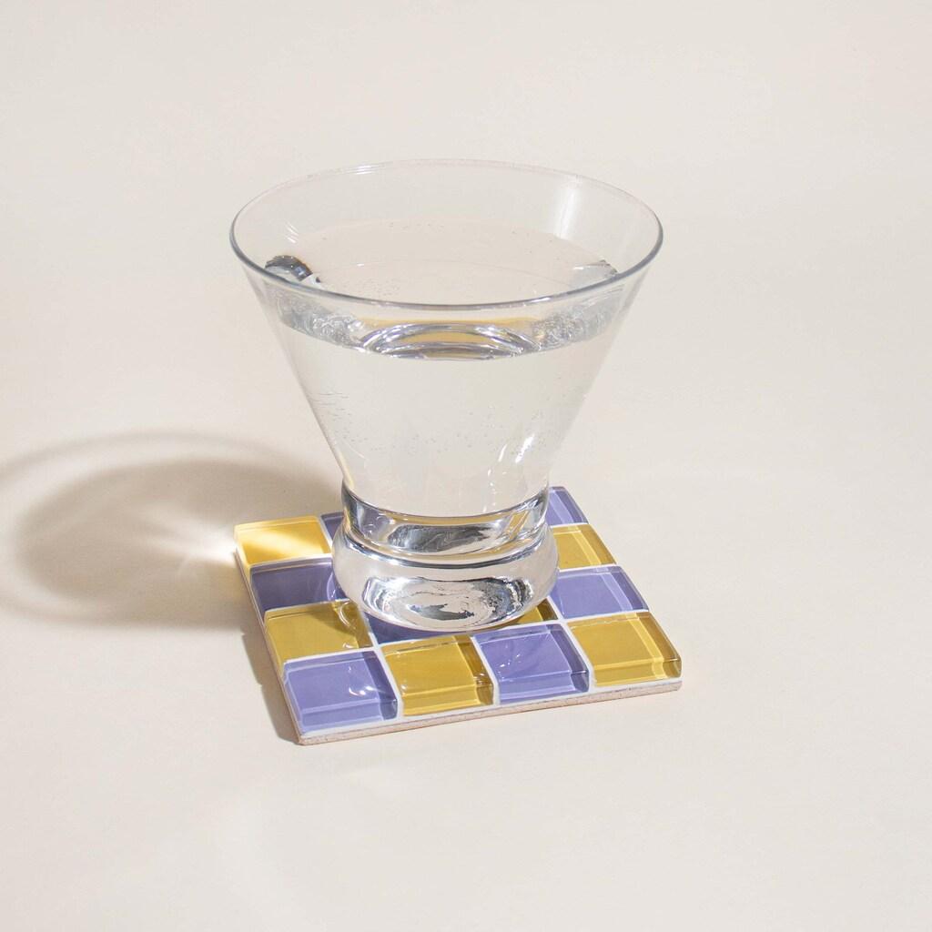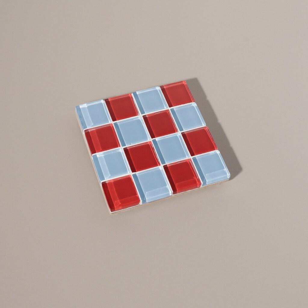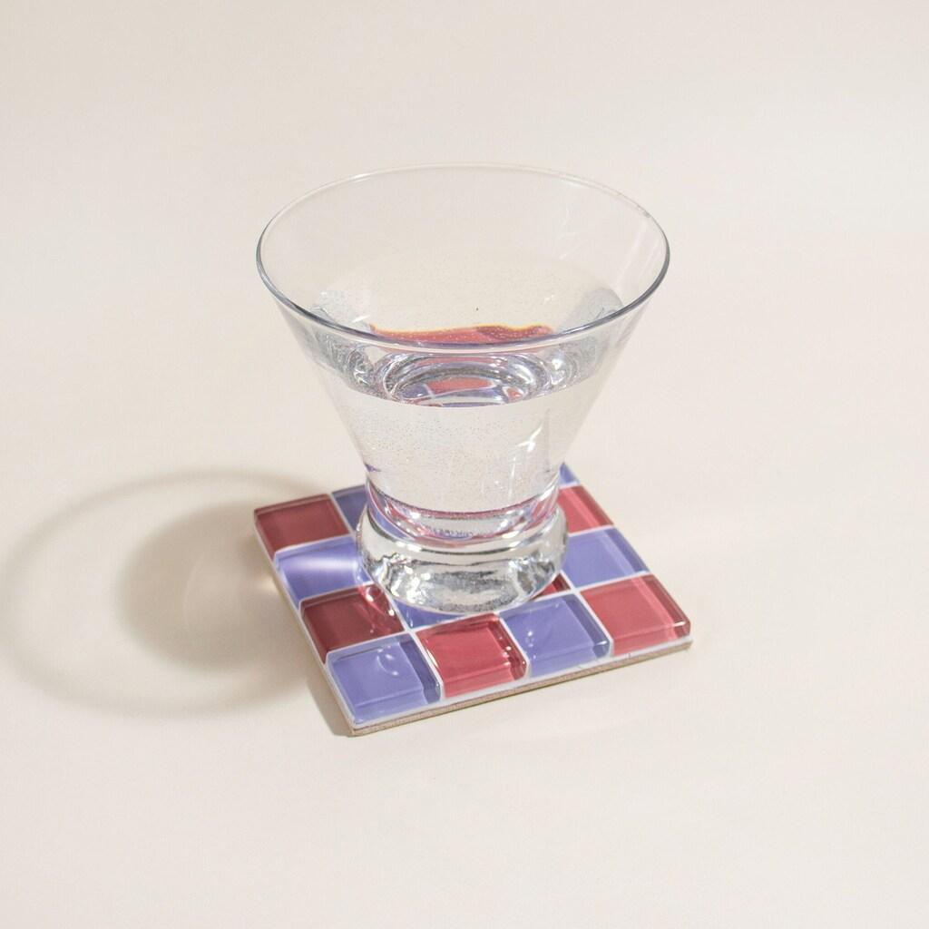 Checkered Glass Tile Coaster | Handmade Drink Square Housewarming Gift For Her Him Valentine 3