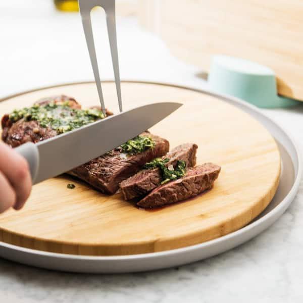 With its sharp stainless steel blade, the Leo carving knife is great for slicing ham, turkey, chicken effortlessly. Use it in combination with the matching carving fork to serve up the Sunday roast in style. The soft-touch handle ensures a comfortable grip while avoiding hand strain. The carving knife comes with a protective sleeve that not only protects your hand when youre reaching for the knife in a drawer but also keeps the blade in perfect condition.