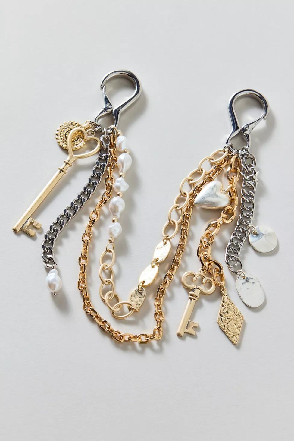 Instantly elevate your bag with this double-layered chain for an effortlessly maximalist look. Featuring mixed metal chains adorned with charm accents and pearl beads, it adds boho edge to your look.