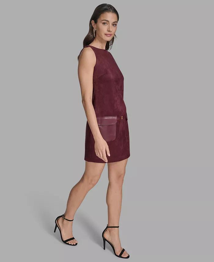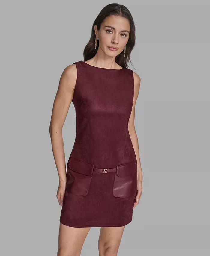Elevate your wardrobe with this chic BCBG dress, defined by its structured silhouette, boat neckline, and back zip closure. Featuring exposed pockets and a coordinating belt that accentuates the waist, it transitions seamlessly from day to work to cocktail events