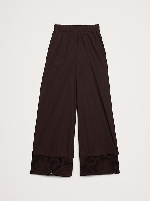 A best-seller returns. An ode to traditional broderie anglaise, these wide-leg pull-on pants have embroidered cutwork lace accents at the hem. Cut in our signature 100% cotton poplin. Style with the matching popover shirt or wear with an easy, oversized linen sweater.
