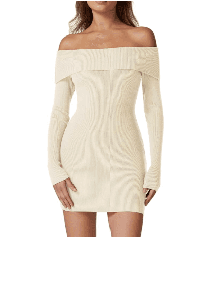 Women's Off The Shoulder Ribbed Knit Sweater Dress