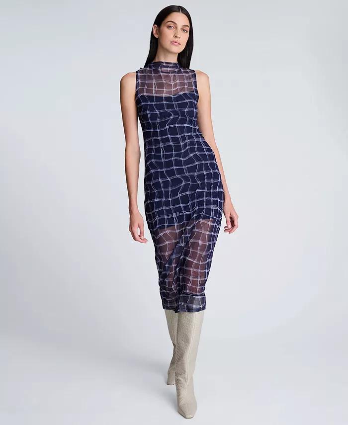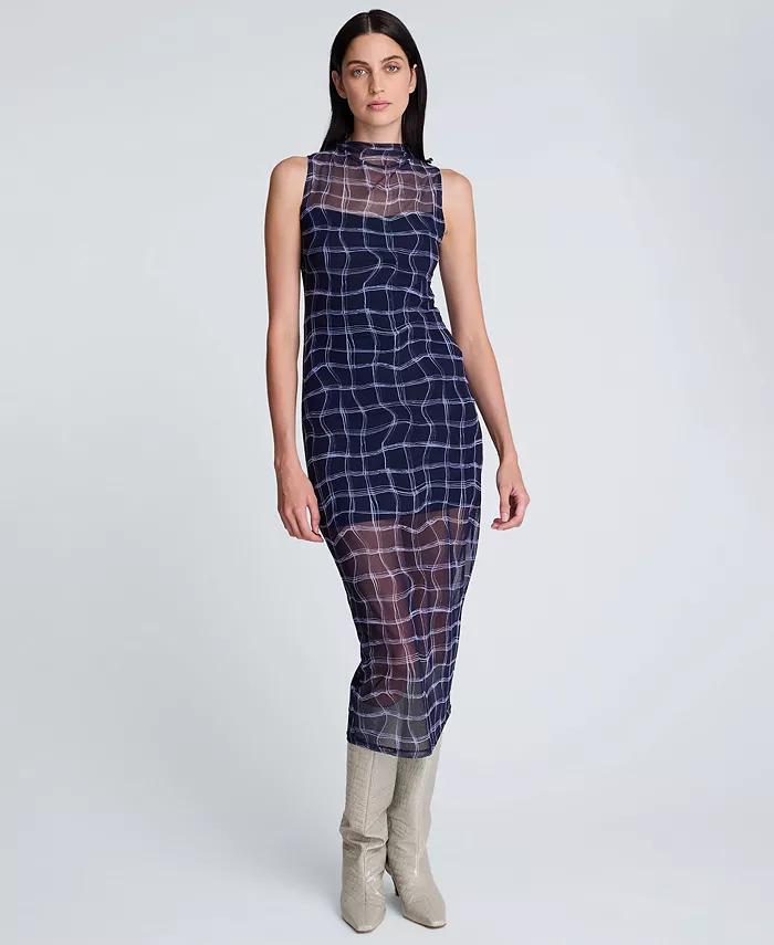 Kenneth Cole Women's High Neck Mesh Midi Dress