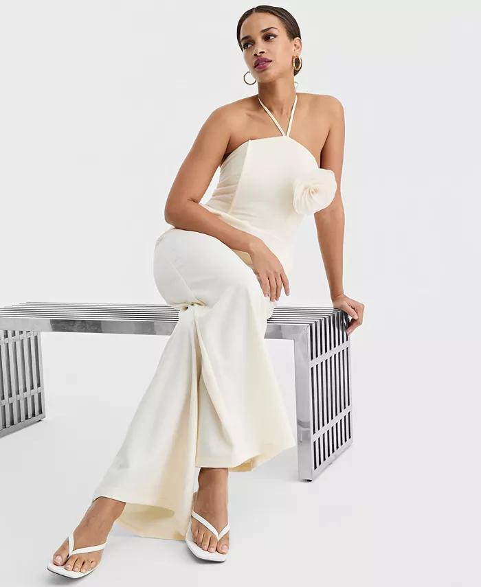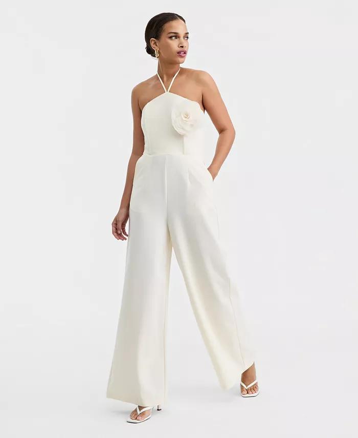 Women's Rosette Halter Neck Wide-Leg Jumpsuit, Macy's Exclusive