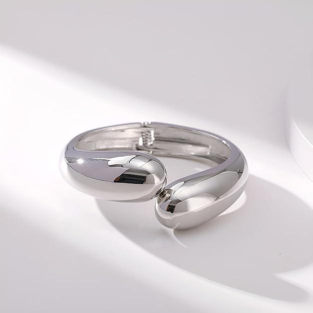 Silver Chunky Bracelet: Simple design reveals the eternity of love, This personalized bracelet has a simple design, but it is full of luxury. Suitable for daily wear and clothing-matching. Alloy material, the bracelet is 2.8 inches long, and 2.36 oz in total weight, The adjustable open-cuff bangle bracelet fits most wrists Style: Beautiful and elegant, easy to wear, simple but fashionable. With a simple meaning, interpret the light luxury style, and highlight your charm.