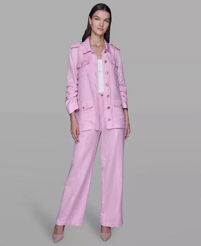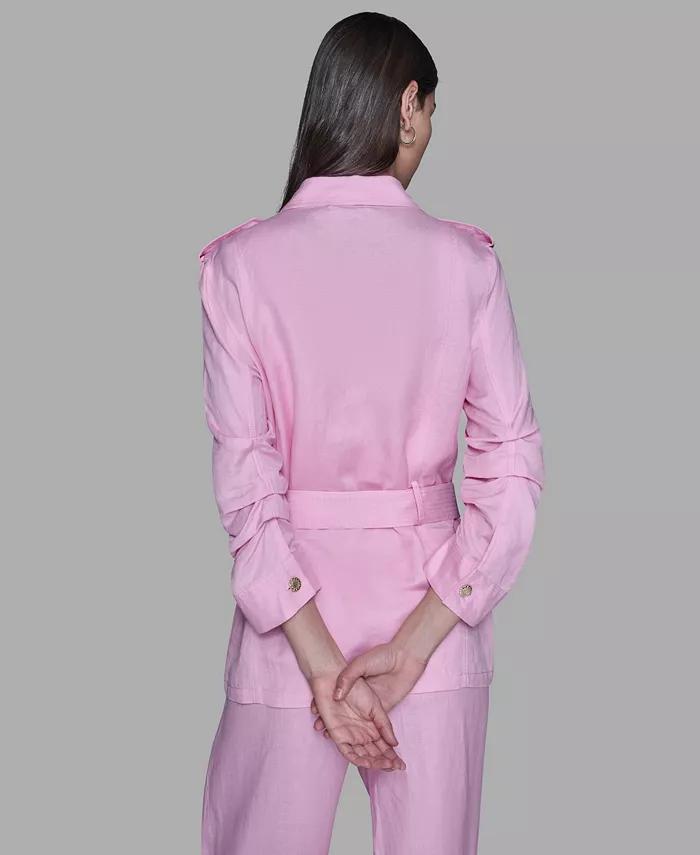 KARL LAGERFELD PARIS Women's Collared Linen-Blend Belted Jacket
