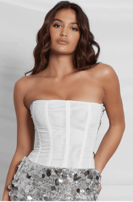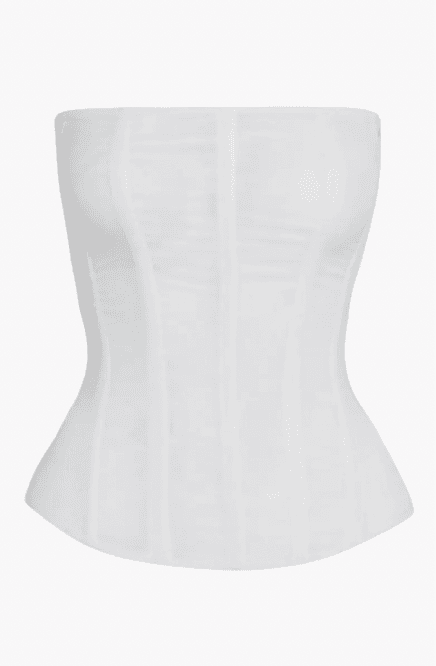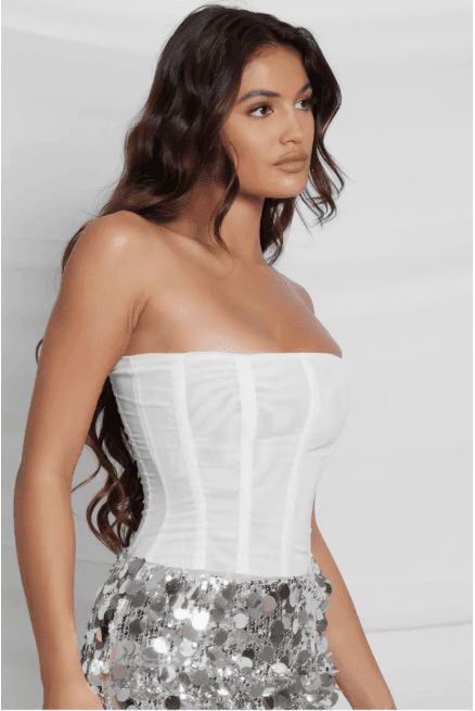 Designed to sculpt and shape, this mesh corset top features vertical wire boning that cinches your waist while double layered construction provides exceptional support making it the perfect versatile piece that goes with everything.