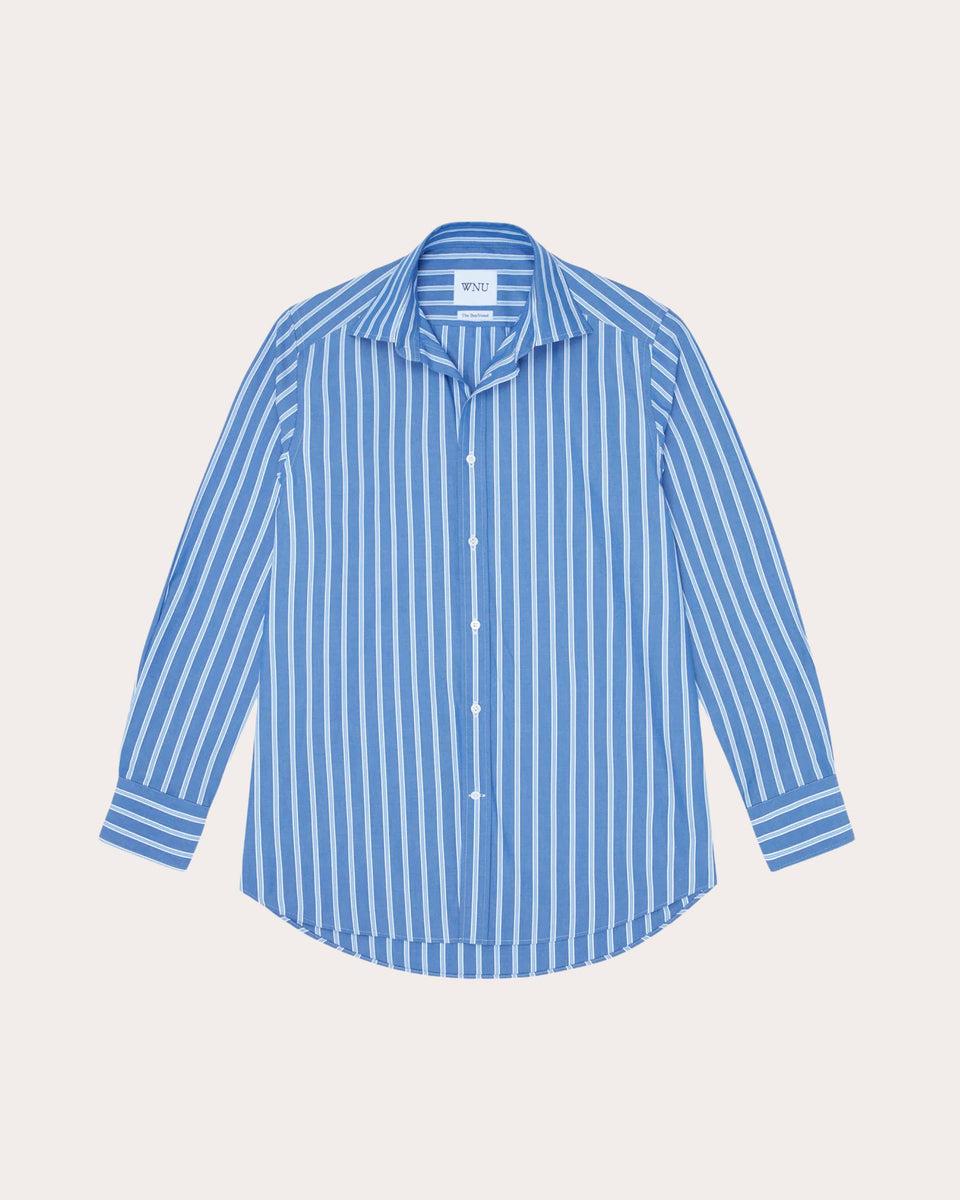 Blending immaculate craftsmanship with effortless tailoring, the Boyfriend shirt pairs its fine poplin fabric with a curved hem and pleated back yoke to create a relaxed, slightly oversized drape. The collared neckline, cuffed sleeves and front button placket reflect menswear inspiration.