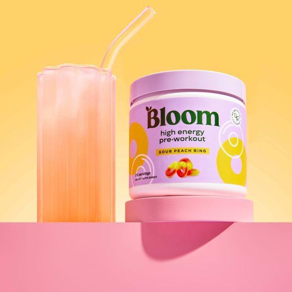 BLOOM NUTRITION High Energy Pre-Workout Supplement Powder - Sour Peach Ring - 7oz/25 Servings